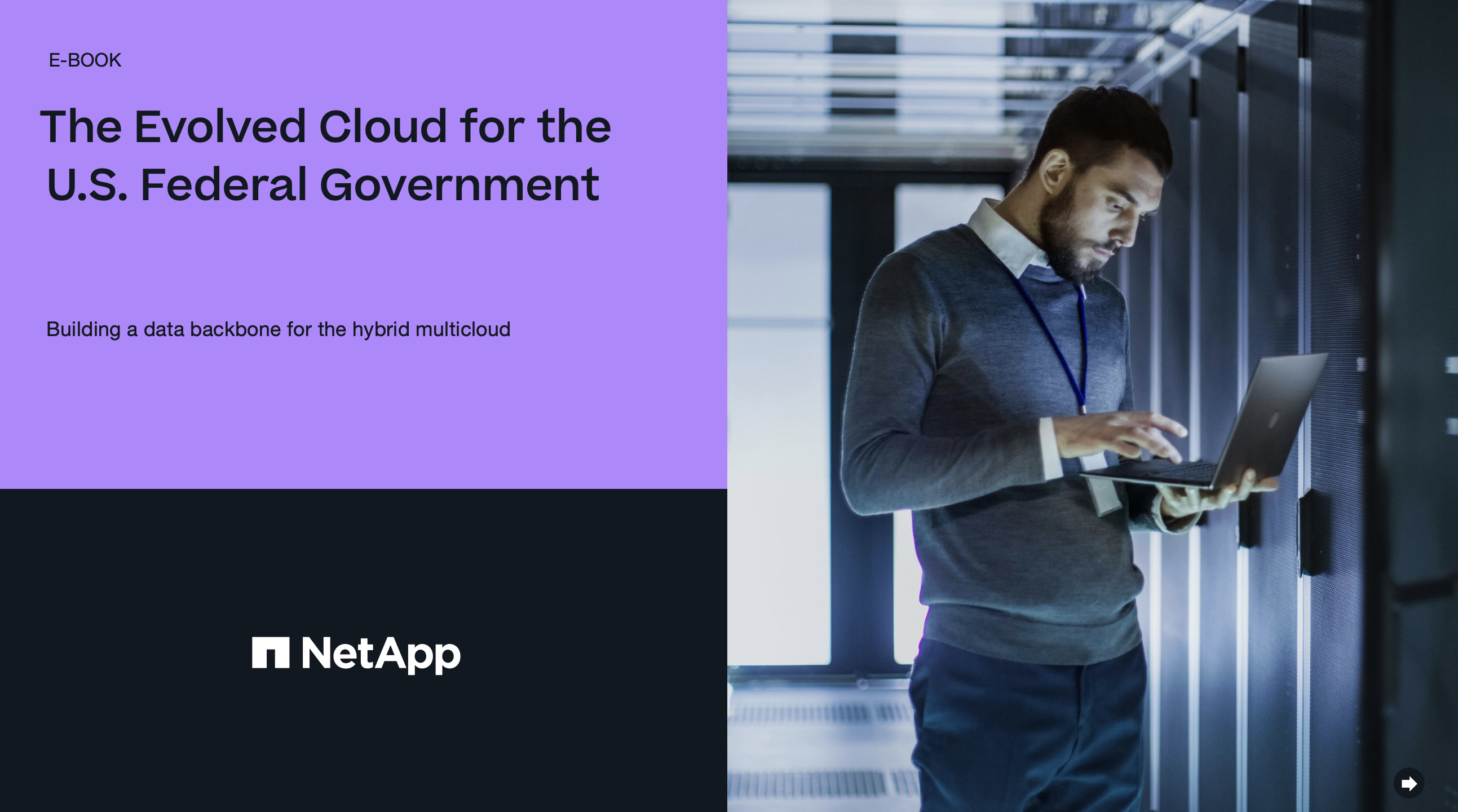 In this eBook, we dive into how NetApp supports the federal government, and helps leaders leverage their data in ways that bring both immediate and long-term advantages. Click the image below to continue learning about hybrid multicloud, data and more!