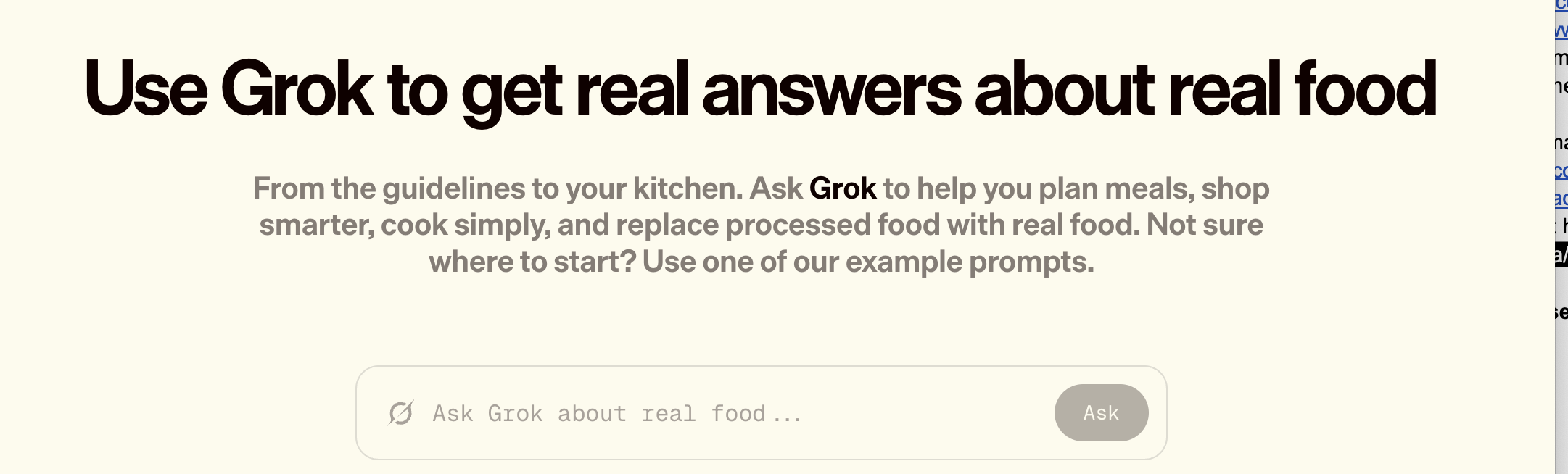After Nextgov/FCW on Monday sent the administration questions about the placement of Grok on the site, it was changed so that it no longer called Grok out by name. Previously, it said, “Use Grok to get real answers about real food.”